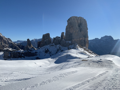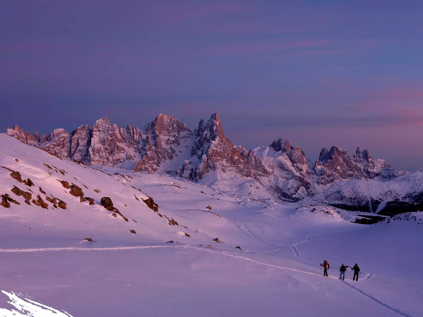 The Gebirgsjägertour ski circuit, also known as the Peace Tour, passes beneath the peaks of the famous summits Civetta, Monte Pelmo, Tofana.