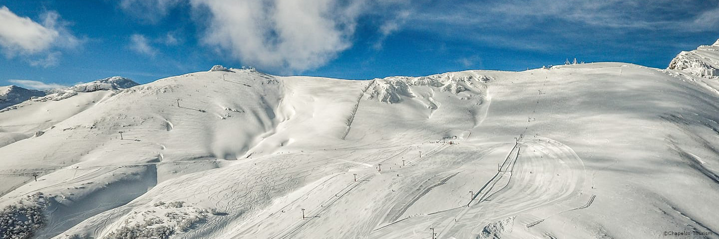 Chapelco has a good snow record with annual snowfall of over 350 inches providing a long season that starts mid June and goes through to early October. The skiable area on Mount Chapelco is spread over 160 skiable hectares with 28 pistes covering 103kms serviced by 12 lifts. Around 15% of the on-piste skiing is for beginners, 60% for intermediates and the rest for the advanced.
