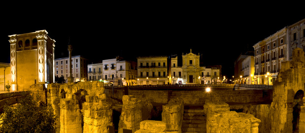 The "centro storico" or old town, which is accessed through 3 gates - Porta Rudiae, Porta San Biagio and Porta Napoli, is a master piece of Baroque architecture which can be seen pn the facades of the many palaces and churches. One of the main square, Piazza Sant'Oronzo, was partially built on top of a Roman amphitheatre with half of the ruins still visible.