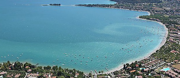 The small resort of Manerba lies in a bay on the south western shore of Lake Garda surrounded by vineyards and olive trees and over looked by the domineering cliff Rocca di Manerba.